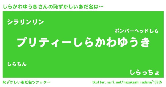 | 男性向けラノベタイトル風あだ名 | 『はたらくしらかわゆうきさま!』 |