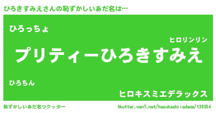 | 女子向けラノベタイトル風あだ名 | 『ひろきすみえの玉の輿計画!』 |
