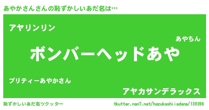 | ヘコむあだ名 | 『あやお』『あやかさん(苦笑)』 |