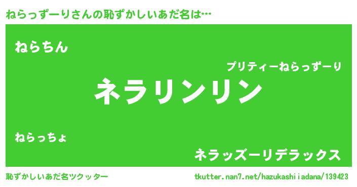 | ヘコむあだ名 | 『ねらを』『ねらっずーり(小並感)』 |