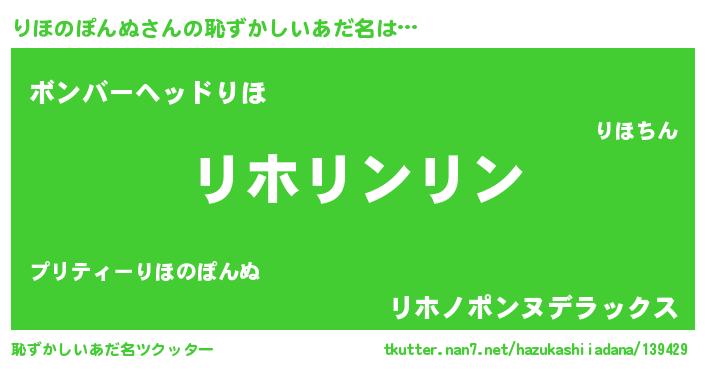 | ヒーロー風カッコイイあだ名 | 『黄金騎士リホ』『愛の使者りほのぽんぬ』 |