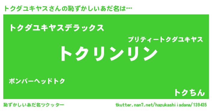 | ヘコむあだ名 | 『トクっぺ』『トクダユキヤス(震え声)』 |