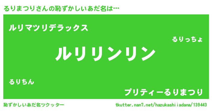 | 意味不明あだ名 | 『とにかく怪しいるりまつり』 |