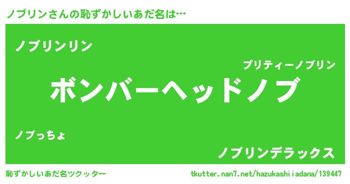 | 男性向けラノベタイトル風あだ名 | 『ノーゲーム・ノーノブリン』 |