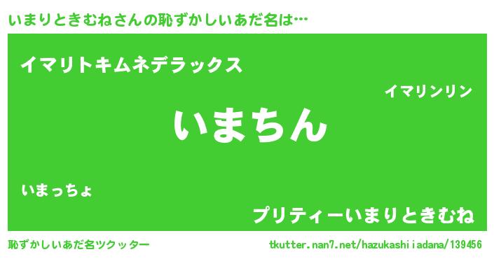 | ヘコむあだ名 | 『いまりときむね(震え声)』『いまにー』 |