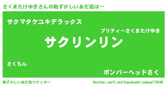 | 男性向けラノベタイトル風あだ名 | 『ダンジョンにさくまたけゆきを求めるのは間違っているだろうか』 |