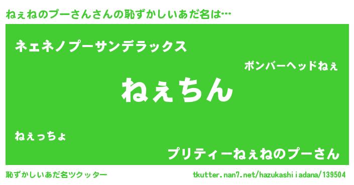 | ヘコむあだ名 | 『ねぇねのプーさん(笑)』『ねぇふぇ~』 |