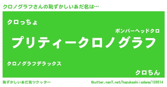 | ヒーロー風カッコイイあだ名 | 『スーパークロノグラフ』『仮面クロダー』 |