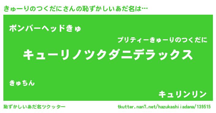 | 意味不明あだ名 | 『自称きゅーりのつくだに』 |