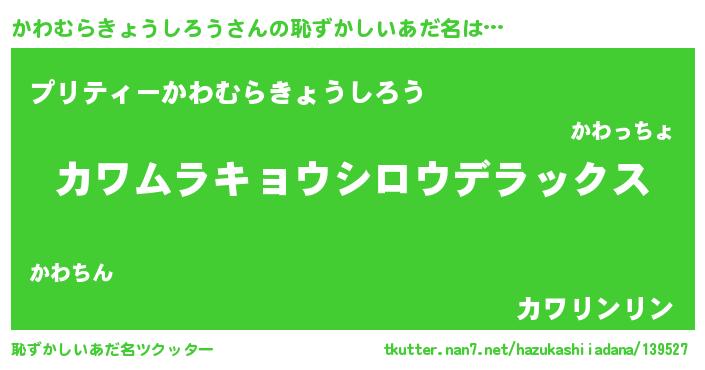 | 意味不明あだ名 | 『自称かわむらきょうしろう』 |