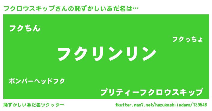 | 男性向けラノベタイトル風あだ名 | 『フクロウスキップの嫁は女の子じゃないと思った?』 |