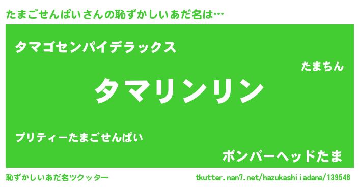 | 女子向けラノベタイトル風あだ名 | 『たまごせんぱいは平凡を望む』 |