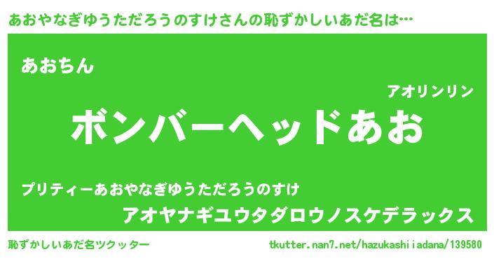 | ヘコむあだ名 | 『あおやなぎゆうただろうのすけ(爆)』 |