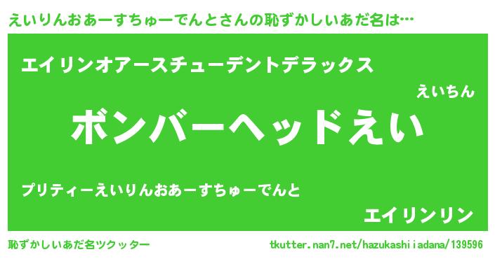 | 男性向けラノベタイトル風あだ名 | 『おまえをオタクにしてやるから、俺をえいりんおあーすちゅーでんとにしてくれ! 』 |