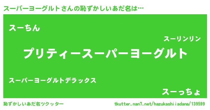 | 意味不明あだ名 | 『ヨモギ科スーパーヨーグルト属』 |