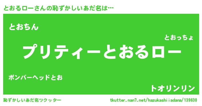 | ヘコむあだ名 | 『とおもー』『とおるロー(笑)』 |