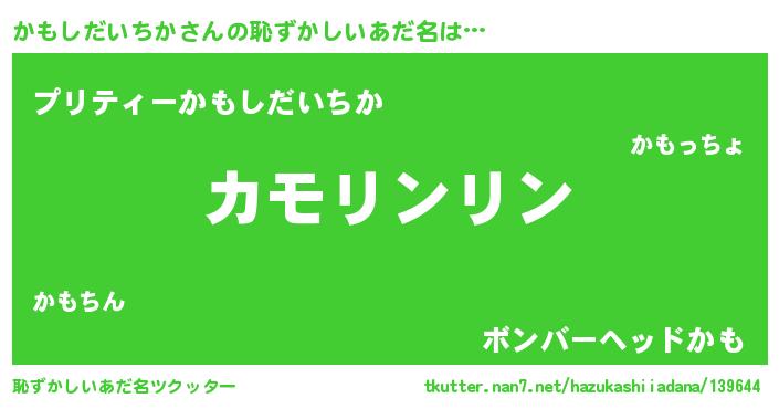 | 意味不明あだ名 | 『とにかく怪しいかもしだいちか』 |