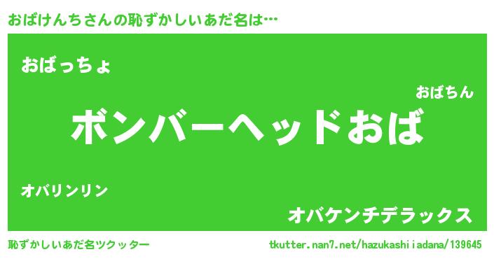 | 意味不明あだ名 | 『眠気覚ましガムおばけんち味』 |