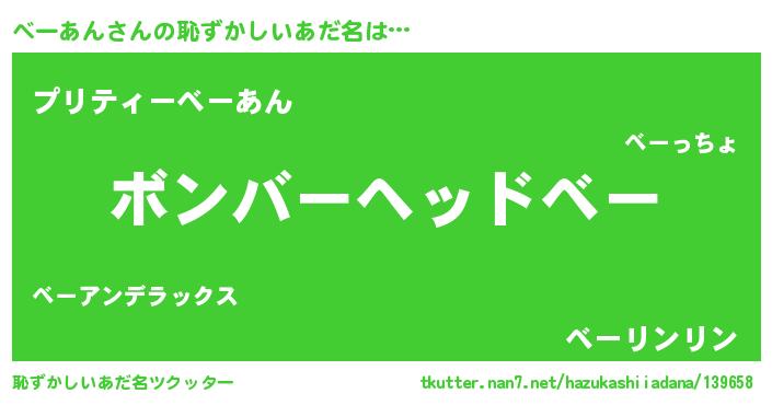| ヒーロー風カッコイイあだ名 | 『愛の使者ベーあん』『スーパーベーアン』 |