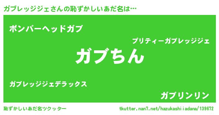 | 意味不明あだ名 | 『住所不定無職ガブレッジジェ(4歳)』 |