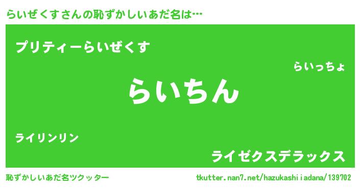 | 意味不明あだ名 | 『永久保存らいぜくす』『自称らいぜくす』 |