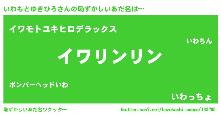 | 男性向けラノベタイトル風あだ名 | 『ダンジョンにいわもとゆきひろを求めるのは間違っているだろうか』 |