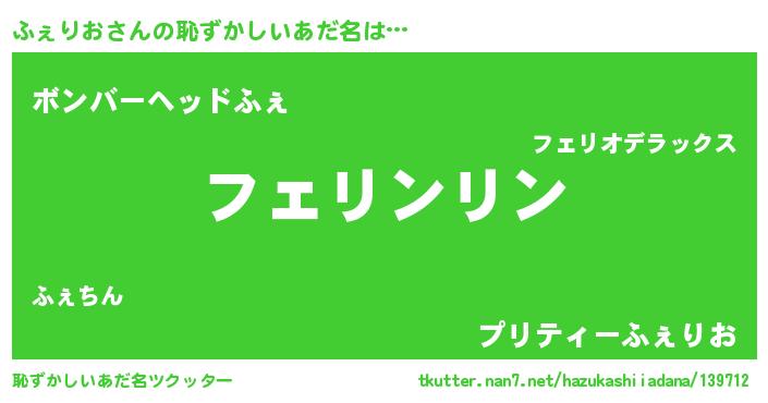 | ヒーロー風カッコイイあだ名 | 『魔戒騎士フェ』『愛の使者ふぇりお』 |