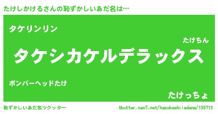 | ヒーロー風カッコイイあだ名 | 『最強戦士タケシカケル』『幻影騎士タケ』 |