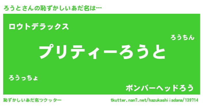 | ヒーロー風カッコイイあだ名 | 『スーパーロウト』『超時空戦士ロウト』 |