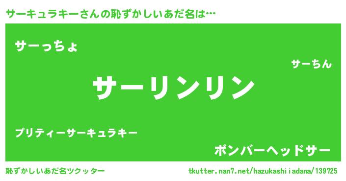 | 男性向けラノベタイトル風あだ名 | 『サーキュラキーの嫁は女の子じゃないと思った?』 |