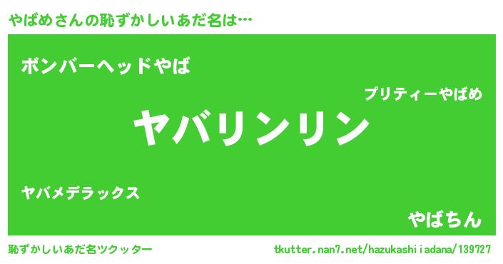 | ヒーロー風カッコイイあだ名 | 『炎刃騎士ヤバ』『友情の使者やばめ』 |