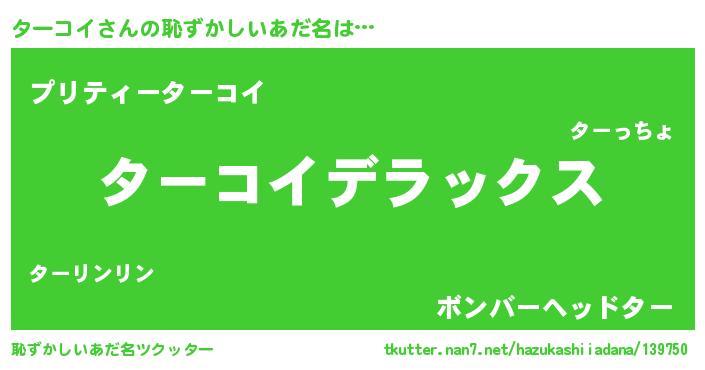 | 女子向けラノベタイトル風あだ名 | 『闇のターコイ』『死神ターコイの再婚』 |