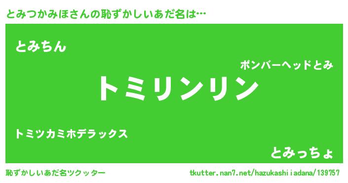 | ヘコむあだ名 | 『とみっぺ』『とみつかみほ(笑)』 |
