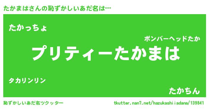 | 意味不明あだ名 | 『ペロリンたかまは』『永久保存たかまは』 |