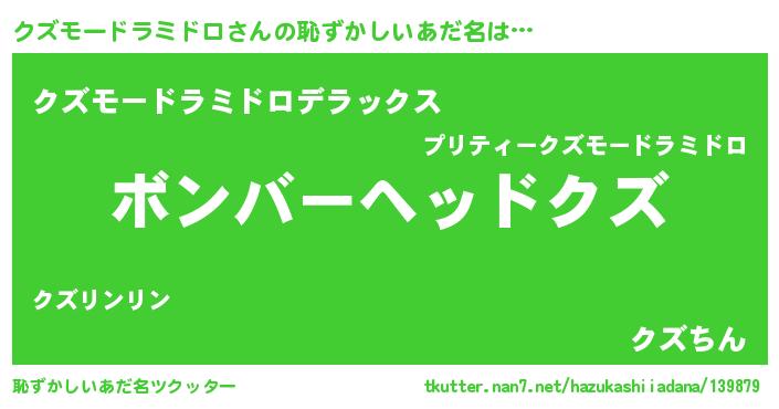 | ヘコむあだ名 | 『クズモードラミドロ(小並感)』『クズもー』 |