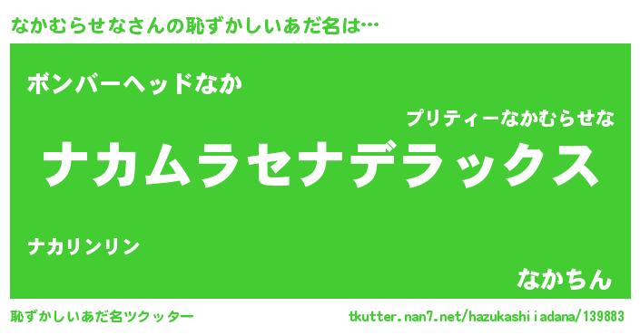 | ヘコむあだ名 | 『なかむらせな(震え声)』『なかふぇ~』 |