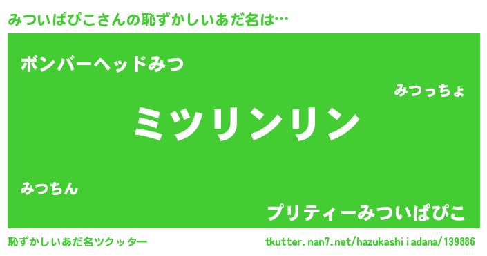 | ポケモン風あだ名 | 『ミツゴンZ』『ヒミツイパピコ』 |