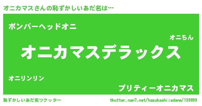 | 男性向けラノベタイトル風あだ名 | 『Re:オニカマスから始める異世界生活』 |