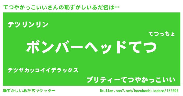 | ヒーロー風カッコイイあだ名 | 『正義の使者てつやかっこいい』 |
