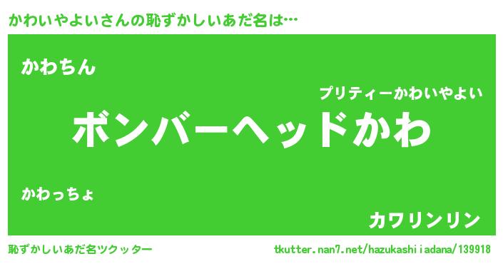 | ヘコむあだ名 | 『かわいやよい(笑)』『かわぷりん』 |