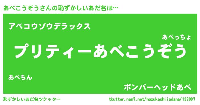 | ヒーロー風カッコイイあだ名 | 『スーパーアベコウゾウ』 |