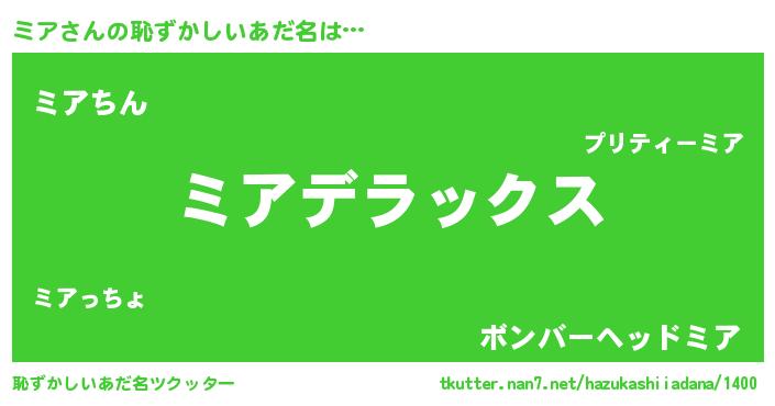 | 意味不明あだ名 | 『自称ミア』『永久保存ミア』 |