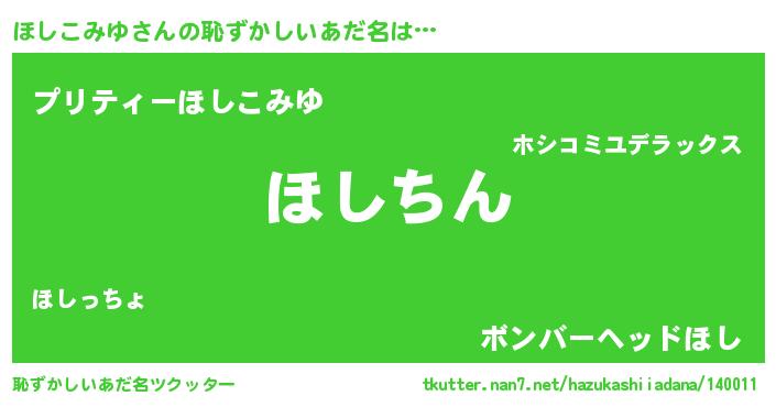 | ヘコむあだ名 | 『ほしこみゆ(笑)』『ほしもー』 |