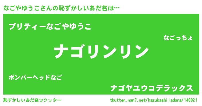 | 男性向けラノベタイトル風あだ名 | 『なごやゆうこの嫁は女の子じゃないと思った?』 |