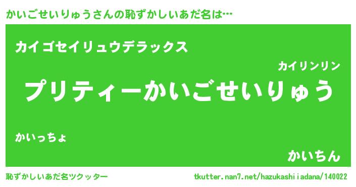 | ヘコむあだ名 | 『かいもー』『かいごせいりゅう(笑)』 |