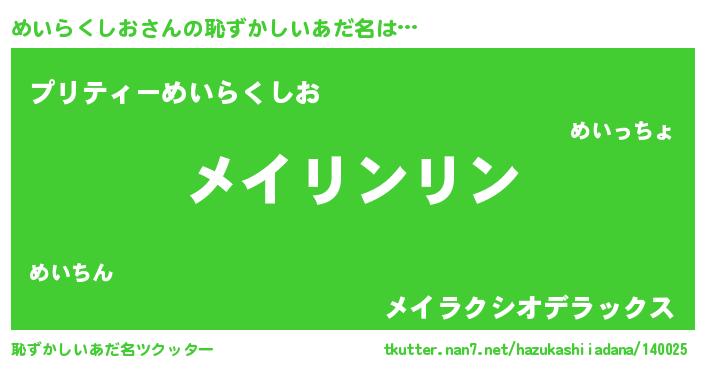 | 意味不明あだ名 | 『とにかく怪しいめいらくしお』 |