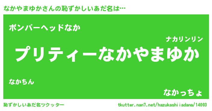 | ヒーロー風カッコイイあだ名 | 『仮面ナカダー』『スーパーナカヤマユカ』 |