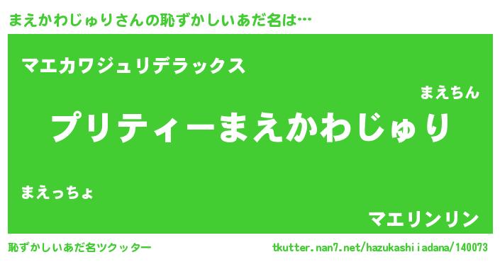 | 胡散臭い通販商品みたいなあだ名 | 『億万長者になれる霊験あらたかなお札…その名も「まえかわじゅり」』 |