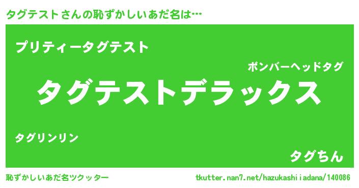 | 意味不明あだ名 | 『自称タグテスト』『ペロリンタグテスト』 |