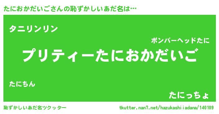 | ポケモン風あだ名 | 『タニチュウ』『ヒタニオカダイゴ』 |